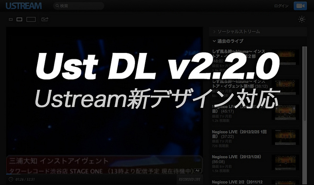 Ustreamのリニューアルに「Ust DL」を対応させました(一部MP4ダウンロード可能)