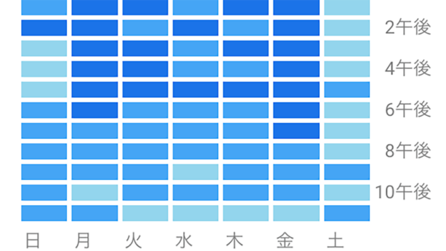 何曜日の何時ころがピークなのか分かりやすいヒートマップ的な分布を出すSQL